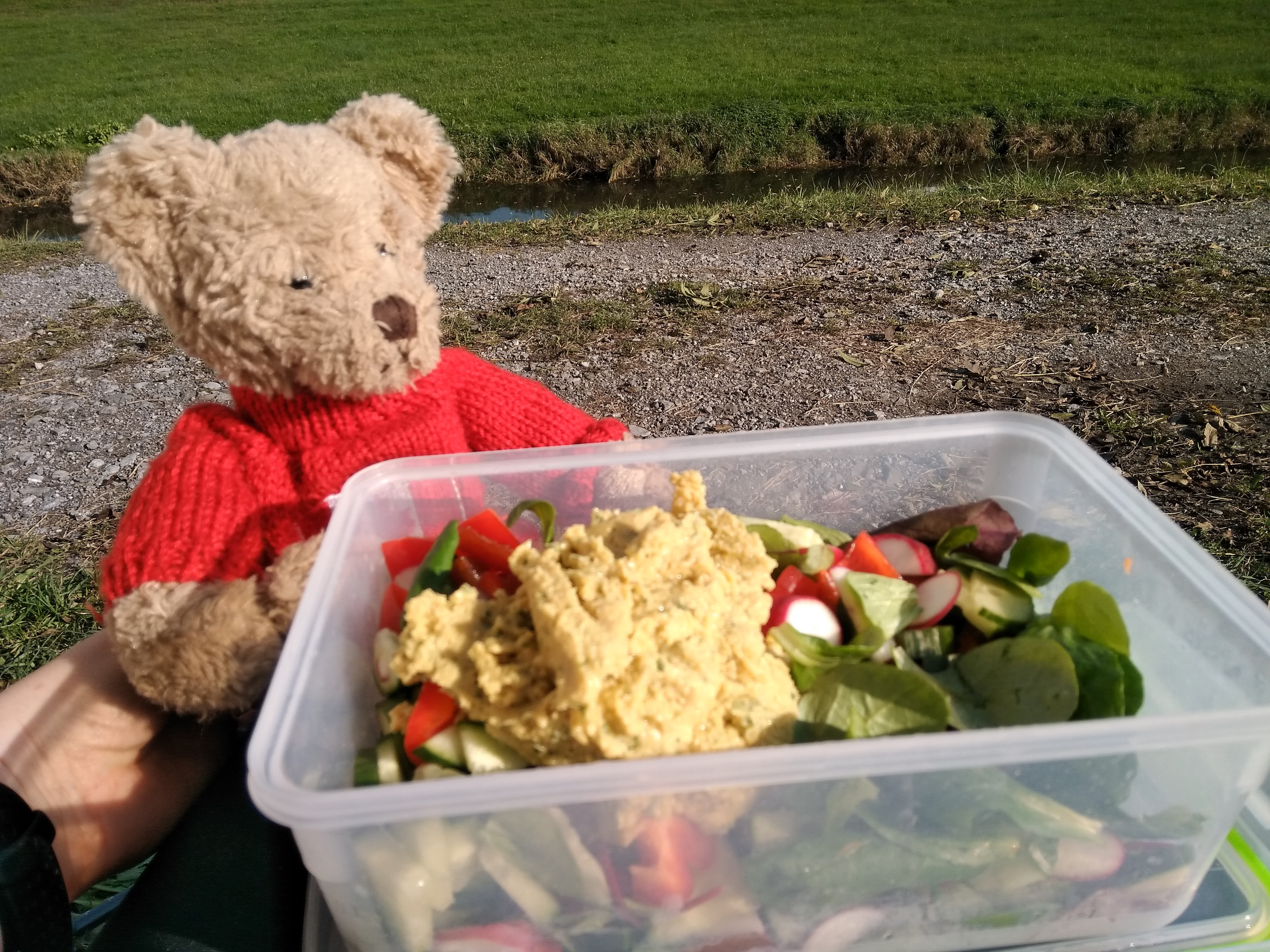 I wandered around a bit, I found shells on signs and had to make a decision about which one to follow. I chose to walk along the river, but after about 20 minutes of seeing no signs at all, let alone shells, I decided it was time to stop and have lunch. I found a staircase to sit on near the path so that I could nab an unsuspecting person and get their help with directions. Thankfully the first couple who I stopped where lovely and accommodating and told me, surprisingly, that I should have continued along the river rather than going through the covered bridge. They said I was on the wrong side of the river, which was why I had no signs. The man gave me excellent directions to follow and I was prepared to get on my way again, after lunch.
