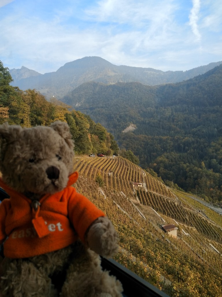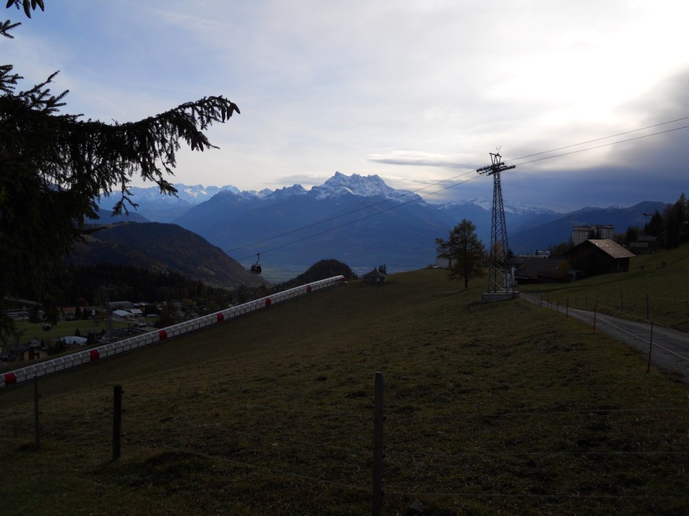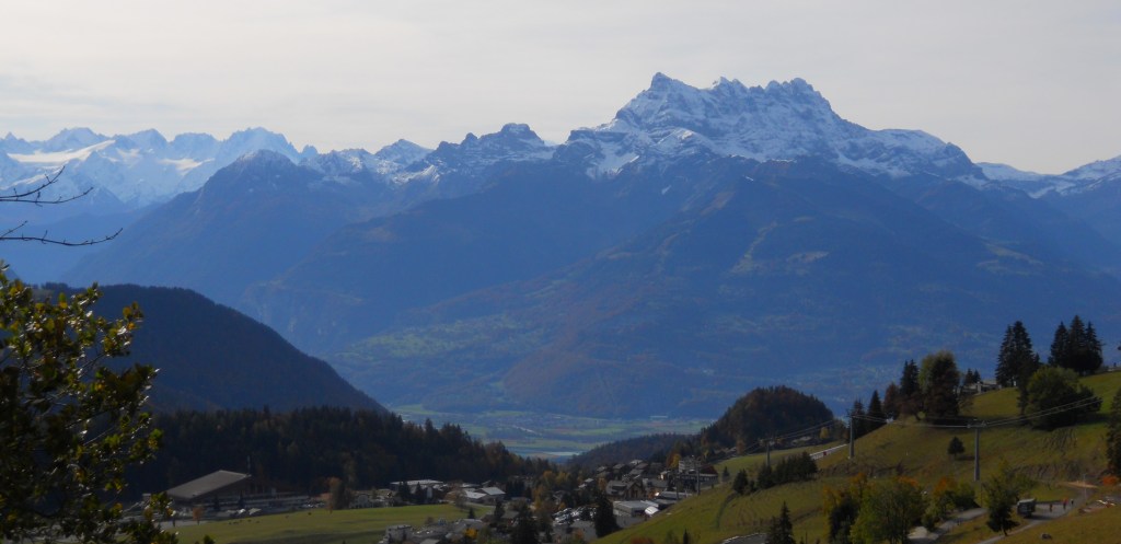 I have been unable to continue on my Jakobsweg trail beacuse work has taken up a bit more of my time over the last couple weeks. However, if you are ever in Switzerland and you want to visit an amazing hiking, skiing, snowshoeing and mountain biking area, Leysin is for you. It is in the Vaud Alps and can be reached by mountain railway from Aigle. Great view from the train, painfully close to the edge in places – as you go up you pass by a vineyard and get a better view of the valley. This region of Switzerland produces some excellent wines, which goes nicely with the cheeses that are also produced in this area.
