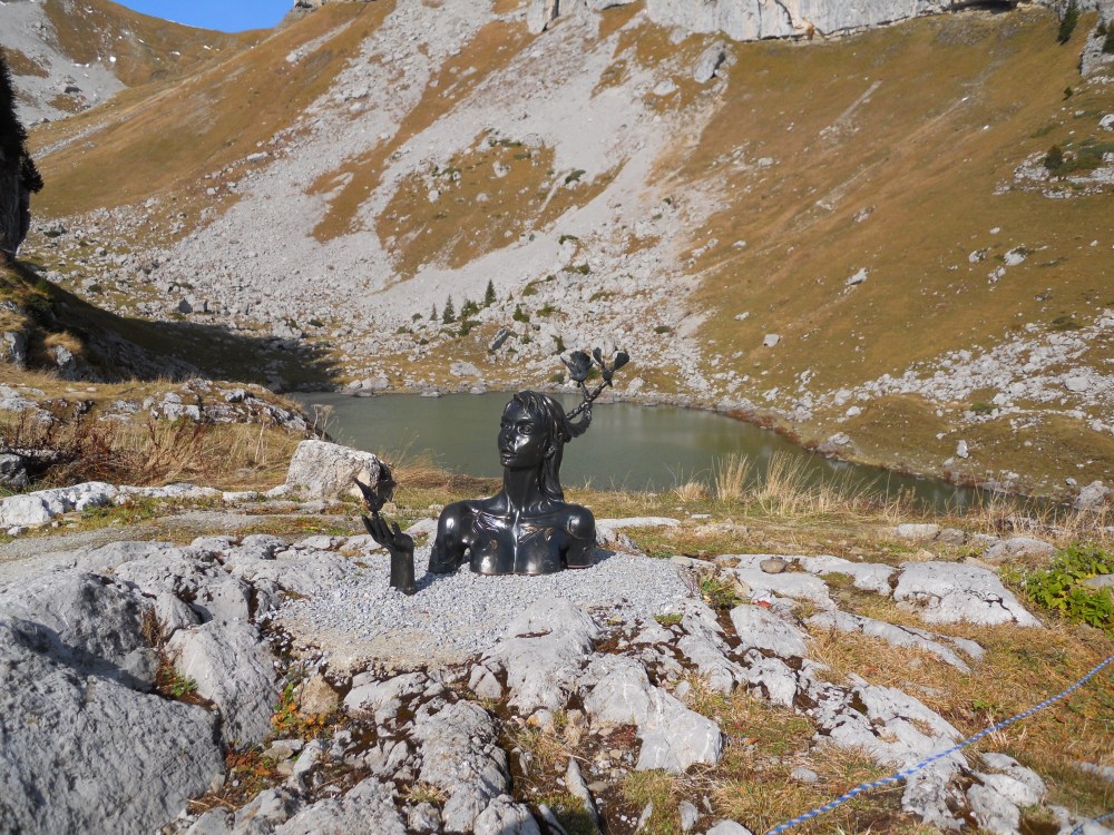 The Refuge du Mayen is definitely a rest stop, but it is very well equipped with running water, toilets, e-bike charging stations, tables and food from local farms – mainly fondue. Sadly, they only took cash and I was only packing cards so I used the facilities, took some photos and then went on my merry way. The lake was small, but colourful. The fairies were a delightful surprise.