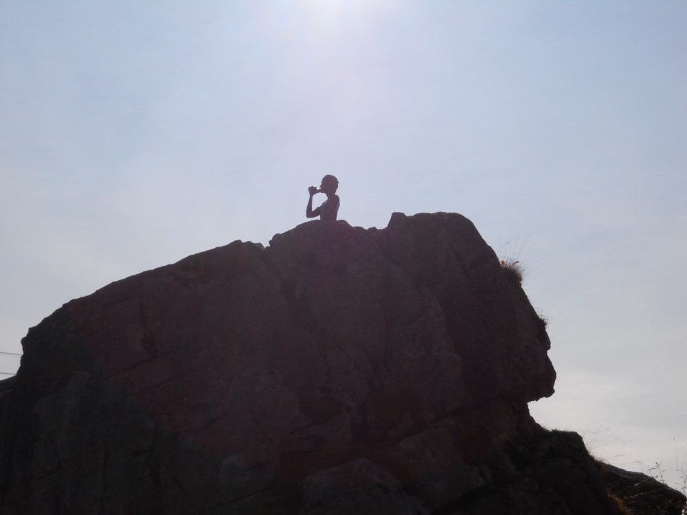 Having said that, … the trail I chose went reasonable well, until it didn’t. Somehow I got off the trail, pretty sure that is my fault for daydreaming a bit and following a cow trail rather than the marked path, but I picked it up again after some rather rough bits. Happily on my way again, even though there were parts that did not impress me, I kept my nerve up, slowed down and was making progress. Until I came to the ‘staircase’. The warning sign caught my attention and then I noticed that the path seemed to disappear. This is never a good thing. Nonetheless, I was determined to give it a try so I crept forward. There was a rope attached to the side of the trail and I had seen some people come up it, so it seemed safe enough. I am sure it was. I made part of the way, but when I got to the top of the ridiculously steep staircase, my brain said ‘Nope.’ I was unable to figure out what to do, so I sat down to think about it. Of course, it was a busy trail so I had about two minutes to myself before someone appeared at the top.