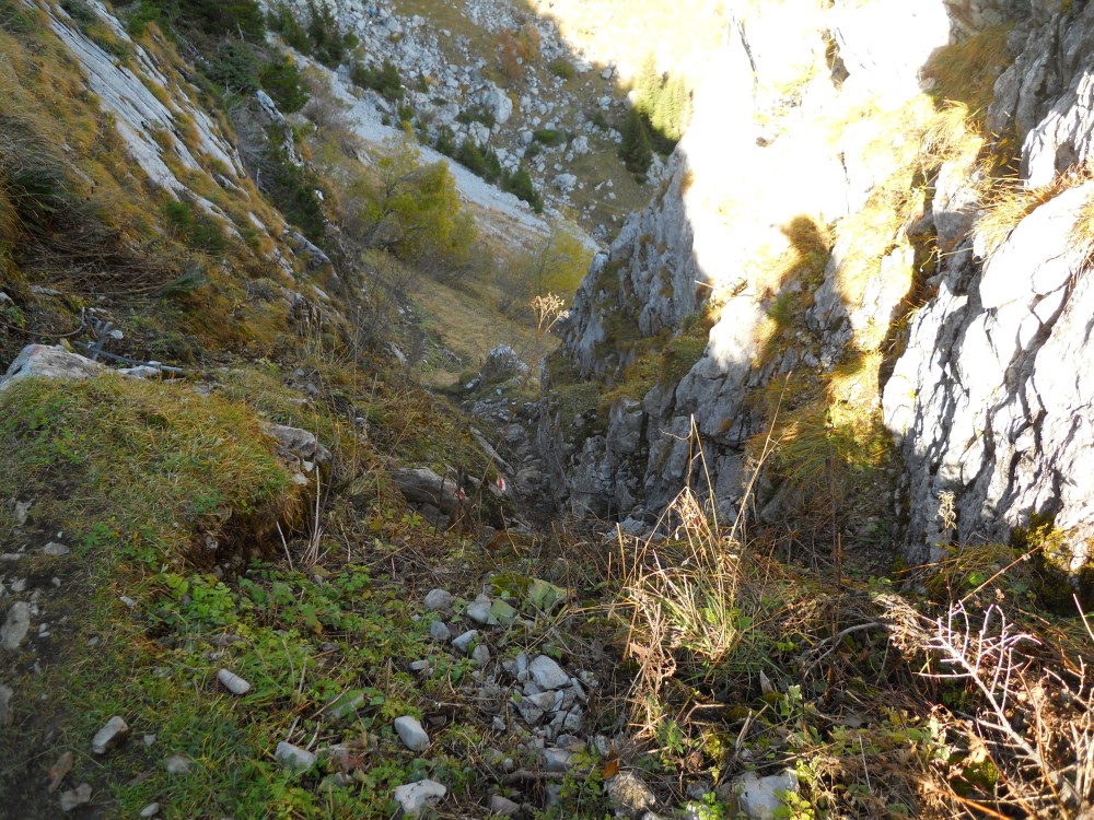 However, when I got to the signs, I decided that Crete du Fer would be more interesting because it was closer and had a restaurant. Ya, so neither happened. When making decisions about which trails to follow, it is helpful to know what the colours mean. Red trails are mountain trails and you need to be surefooted to follow them. I have some balance issues, but for the most part am fairly surefooted. Let me just say how very happy I am that I did not try the blue trail which is an alpine route and requires much more knowledge and ability than I have.